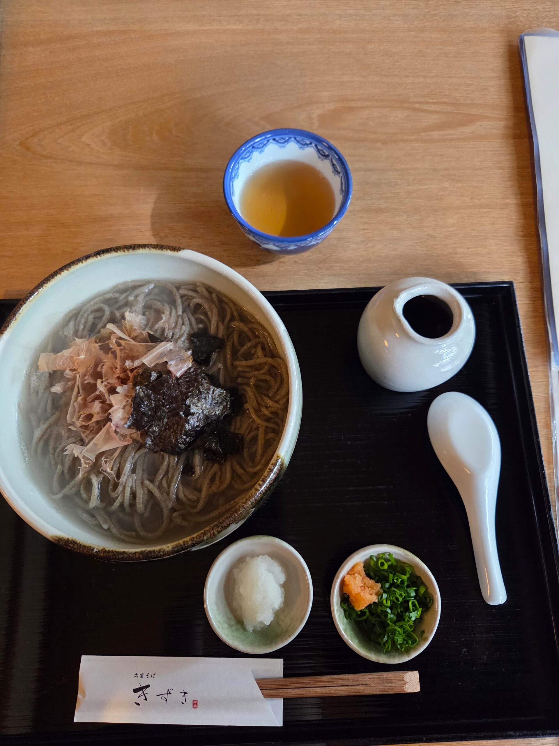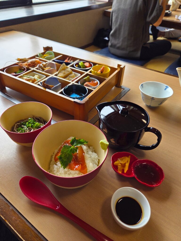 I was kind of late for lunch and everywhere was crowded with people lining up. I wanted to try Izumo soba, so I had to queue at one of them. I tried their recommended Izumo-soba at a shop called “Kizuki”, and indeed the noodle part was unique since it was made with buckwheat with kernels milled together, producing a dark colored noodle. However, the experience was quite underwhelming since the seasoning and side dishes were severly lacking. I wished I had ordered other side dishes too to give more variety of tastes.