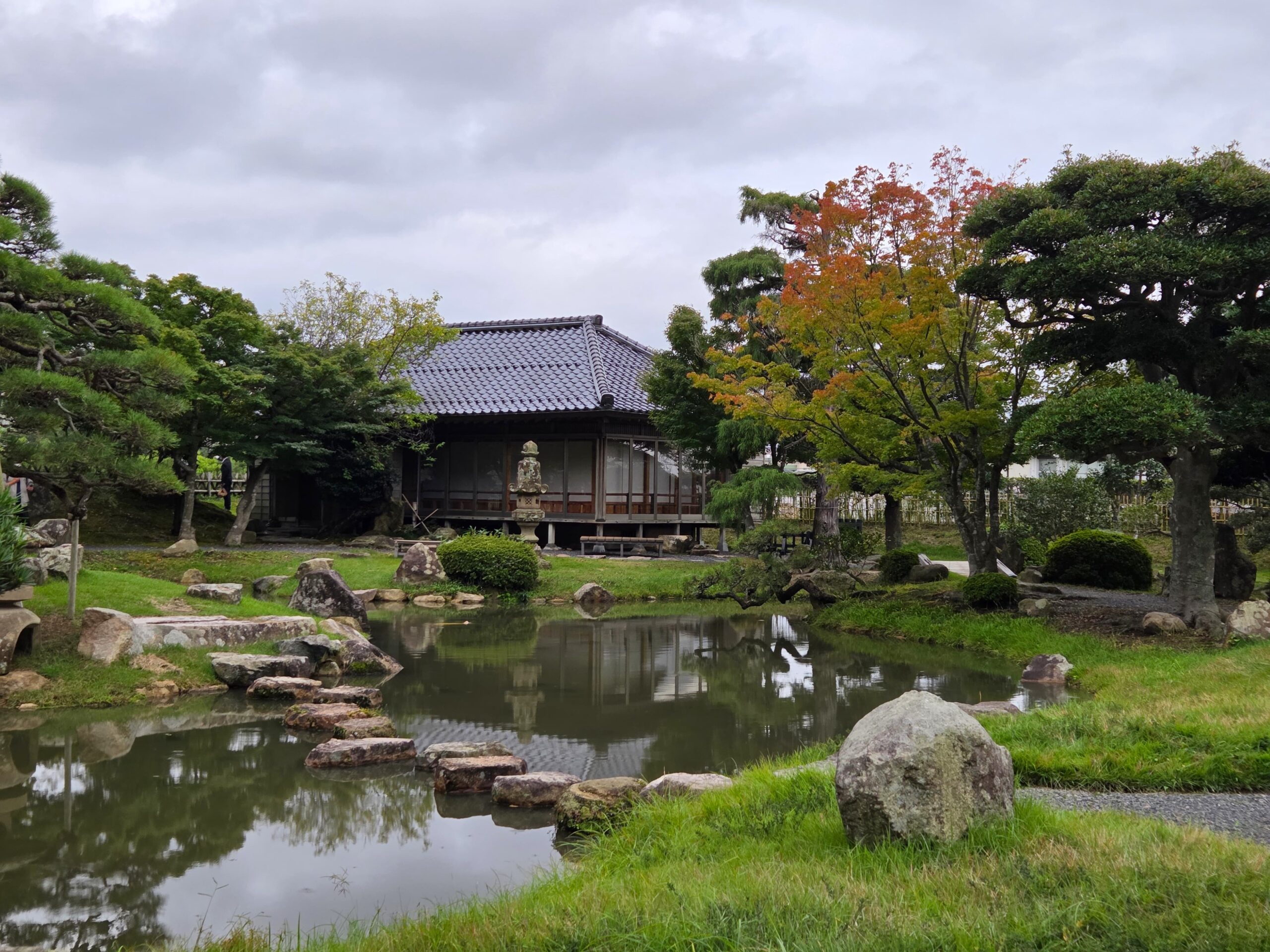 To end the day, I visited the Tottori Castle Ruins located just next to the museum. There was nothing there, since the castle main tower has been completely demolished. The only remains there are the bases. I climbed up to see the empty fields and it was possible to get a view of Tottori City here. Next to the castle, there’s a Western-style guest house as an attraction but it was undergoing renovation. The only open part was the Japanese garden behind which was pretty peaceful. I saw my first autumn leaves here, so pretty.