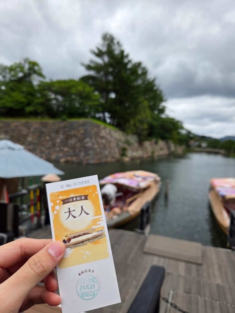 After that, I joined the “Horikawa Sightseeing Boat Tour”. Horikawa is basically the canal surrounding Matsue Castle. It was a really interesting experience. The tour guide who also paddled the boat introduced so many different points of interest in Japanese. Well, they also played a recording of the English version “because there’s a foreigner (me) joining the tour,” but the English version is basically just introducing the name of the point of interest and nothing more. The Japanese version has so much more information like some brief history of such places. I think the most interesting part of the tour was that at some points where we crossed under some bridges, they needed to lower the roof and we needed to bend down and hold for a while. At some point, the guide also sang a folk song to entertain us. What a lovely experience.