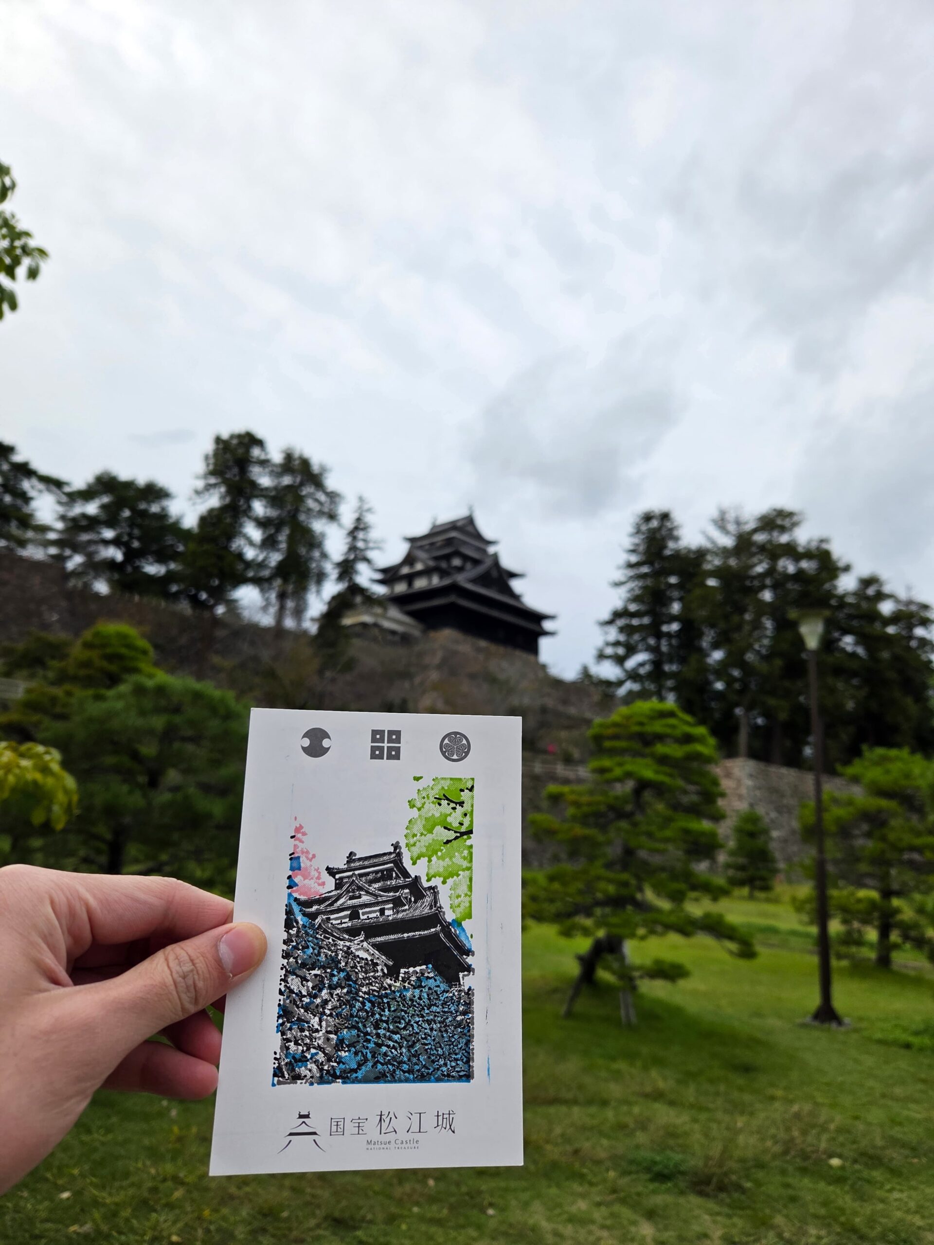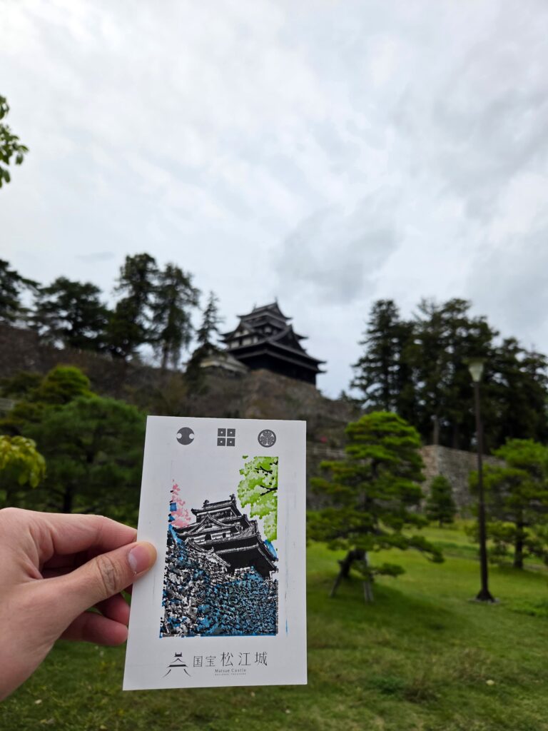 After I left the castle, I visited the Matsue History Museum. While all exhibits are in Japanese, it was really impressive in showing how Matsue developed from a small town to a castle town. Also, it introduced briefly the Meiji Restoration era and how it affected the castle and how this “Lafcadio Hearn” guy was well received during that era. The museum also features a cafe serving matcha with a good view of a Japanese garden and a small view of Matsue castle. I decided to rest there a bit to enjoy the view. I had taken a postcard from the Matsue History Museum that has a stamp rally in it, so it was also my goal that day to complete the postcard with stamps from different places.