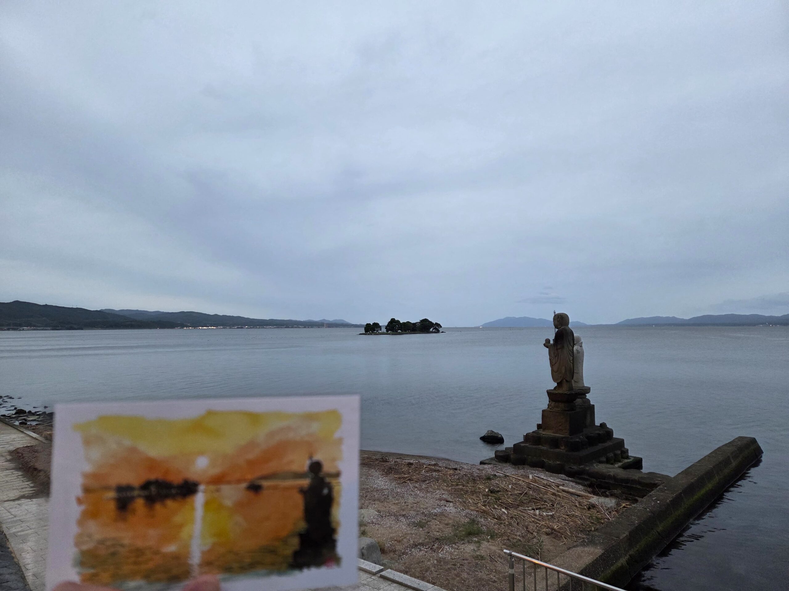 After resting, I decided that I wanted to hunt for the sunset at Shinji Lake. It was still pretty early, so I decided to walk slowly. I intended to visit the Shimane Prefectural Museum too, but unfortunately it was closed that day. Also, the weather was unfortunately not good for sunset viewing as it was totally cloudy and slightly rainy. I waited till sunset time and took pictures of the expectation (postcard I bought from the museum) and the reality.