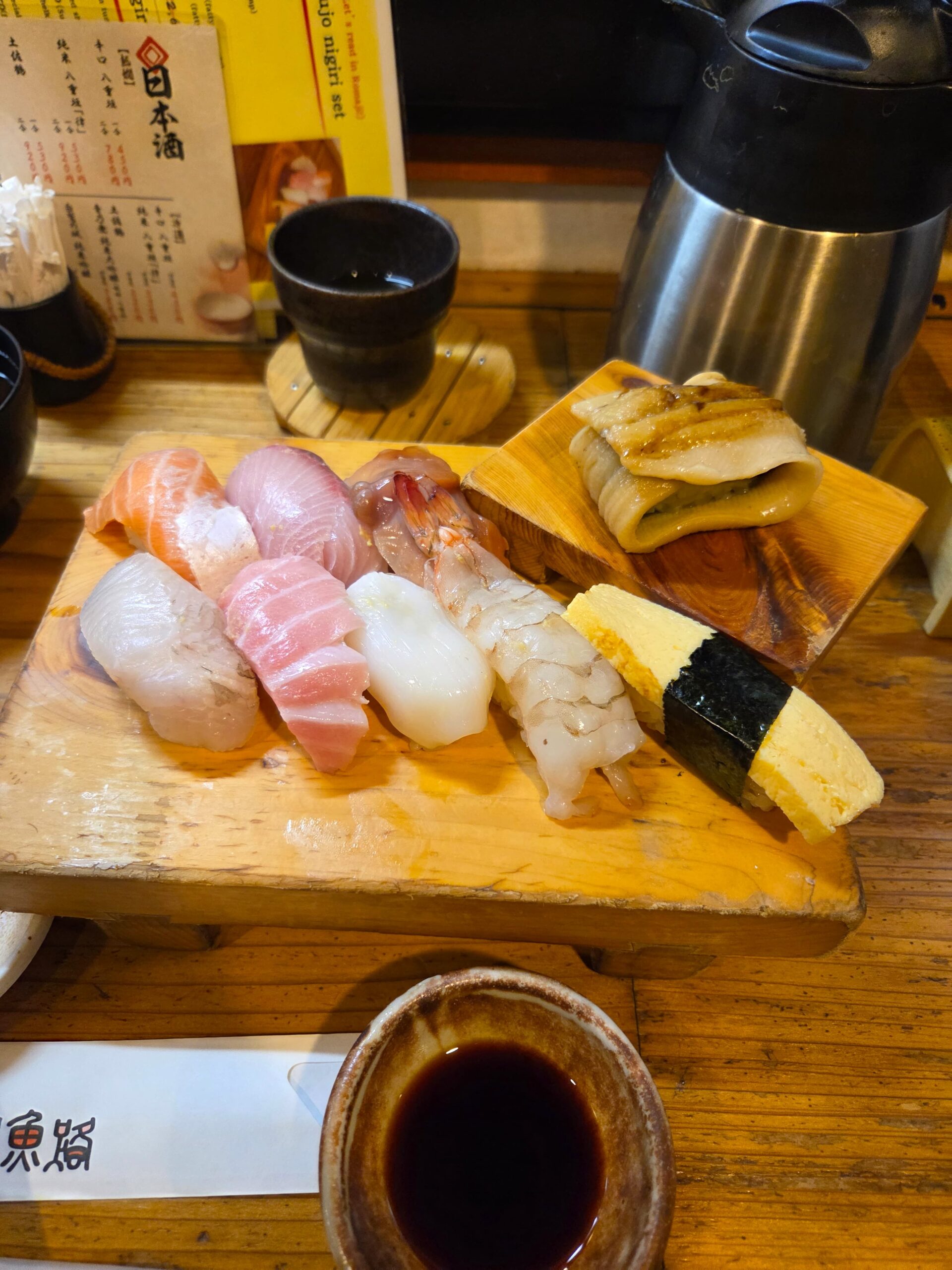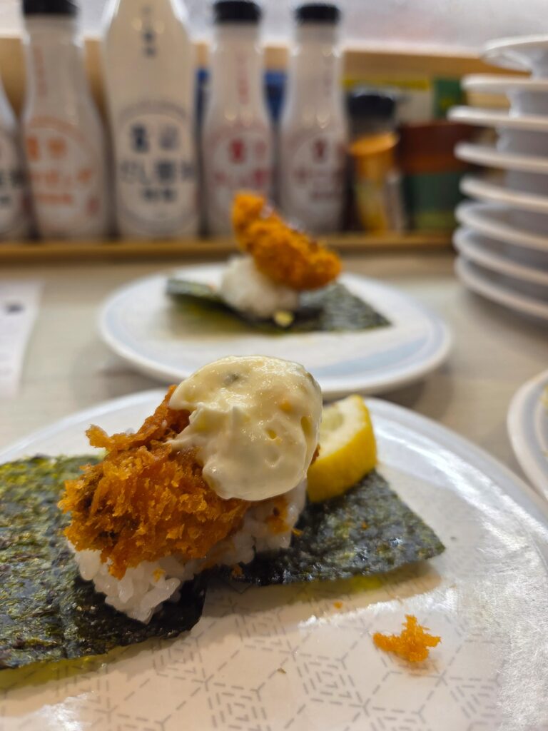 The best food was probably the highly rated sushi in Himeji called “Totoro“. When I tried visiting them at lunch time, I was too late and there were 18 groups queuing. I gave up and returned at dinner time. There was no queue around 17:45 but after I entered, it became full and now there was a queue. The sushi was amazing, very fatty for all of the pieces.