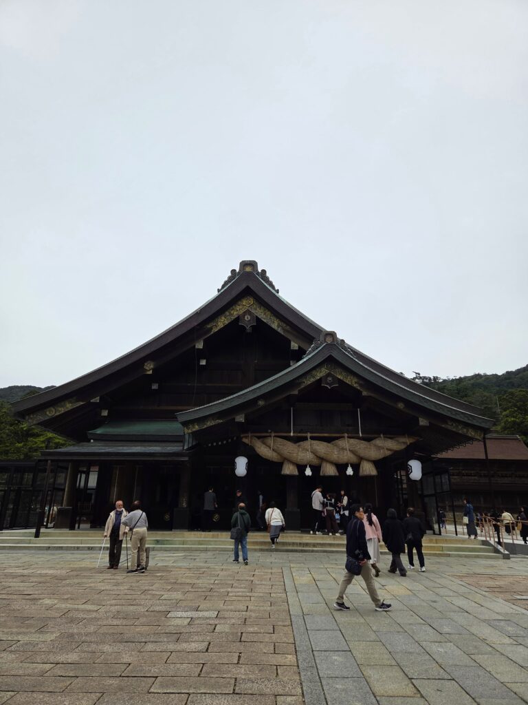First, I took a bus to visit Izumo-taisha. The shrine was so vast and had the feeling of Kasuga-taisha (of Nara), being located in a forest area and dedicated to an important deity. The buildings here were so old but still pristine and well maintained. I observed that in this area, when praying, people clapped four times instead of twice. I also observed that there’s a place where visitors can scoop the sand and bring it home? I wonder what the significance of that is. After this shrine, I visited the museum of the shrine, which showcased so many old artefacts of the olden days. That Lafcadio Hearn guy got several mentions here again, since there were some artefacts that were marked as being shown to him at the time, since he was the first Westerner who was allowed to enter the shrine compound.
