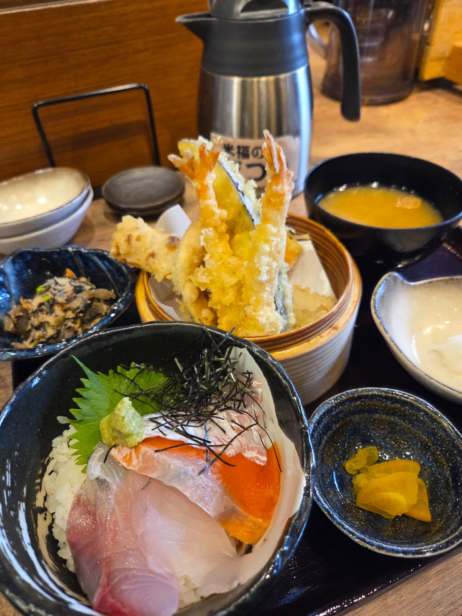 I had lunch at Matsue station. It was tempura and it was really good. At night that shop is an izakaya but for lunch, it was just a normal tempura shop. During lunch, there were a lot of office workers eating here too.