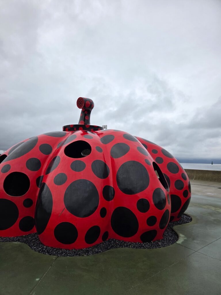 The ferry trip went pretty smooth and we arrived at Miyanoura Port. I rushed to the pumpkin artwork first before rushing to the bus stop.
