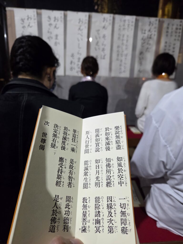The temple itself was still functioning well as a temple, even though occasionally there were tourists visiting. During my visit, a chanting ceremony started and since I peeked, one of the monks invited me in and I decided to try and join in the chanting. Growing up in my hometown, I have joined my parents a number of times in chanting ceremonies. While my experience was in Mandarin, this time it was in Japanese. I found it was much more difficult, even though the sūtra are all written in kanji and each kanji character has furigana reading on top. Some phrases do feel similar to Mandarin, like ‘nam bu’ roughly resembles ‘na mo’. However, sometimes one kanji word has two syllables (like ‘shiki’), and I wasn’t very proficient yet in sight-reading Japanese, even if it’s hiragana. I had no idea of what sūtra I was reciting, but after researching when writing this post, I determined that it was part of the Lotus Sutra. After several minutes, I decided to stop, thank the monk that invited me, and excused myself.
