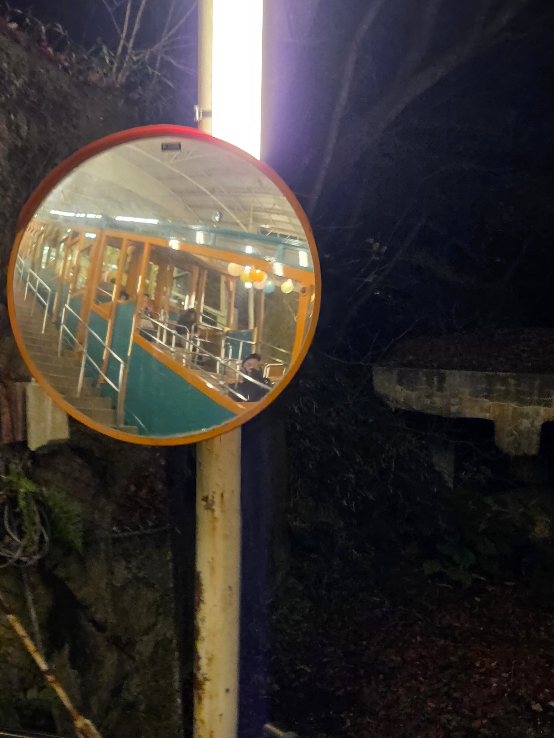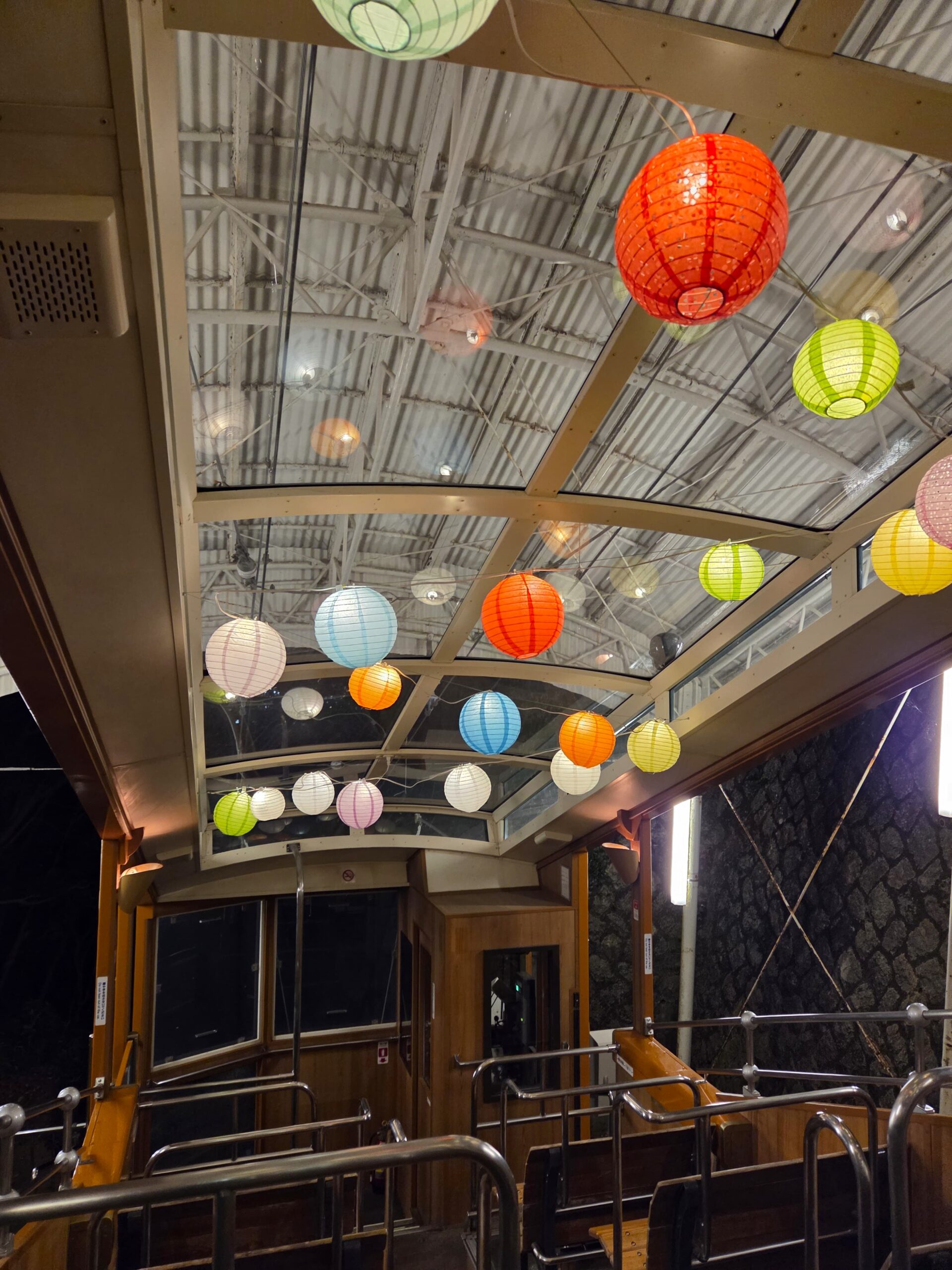 After that I descended down with the cable car. The cable car, which is a funicular, has two cars: indoor and outdoor. I decided to sit at the outdoor section with several Chinese tourists, and everyone else went to the indoor one. Well, since it was dark, I couldn’t see much view, but it was quite an interesting experience. Also, it was really cold after a while.