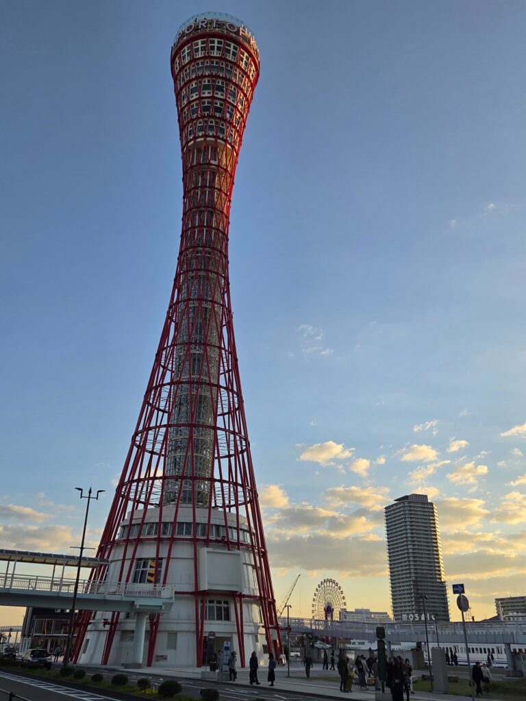 Finally, I spent the rest of the afternoon down south at Kobe Port Tower. It turned out I enjoyed it very much. I liked that we can go to the open-air roof area to watch the surrounding area. As I went up in late afternoon, I stayed through the sunset time till it was dark. Though the sunset was obscured by nearby buildings, the atmosphere was quite pretty nice. It was a nice activity to try to spot things far away too.
