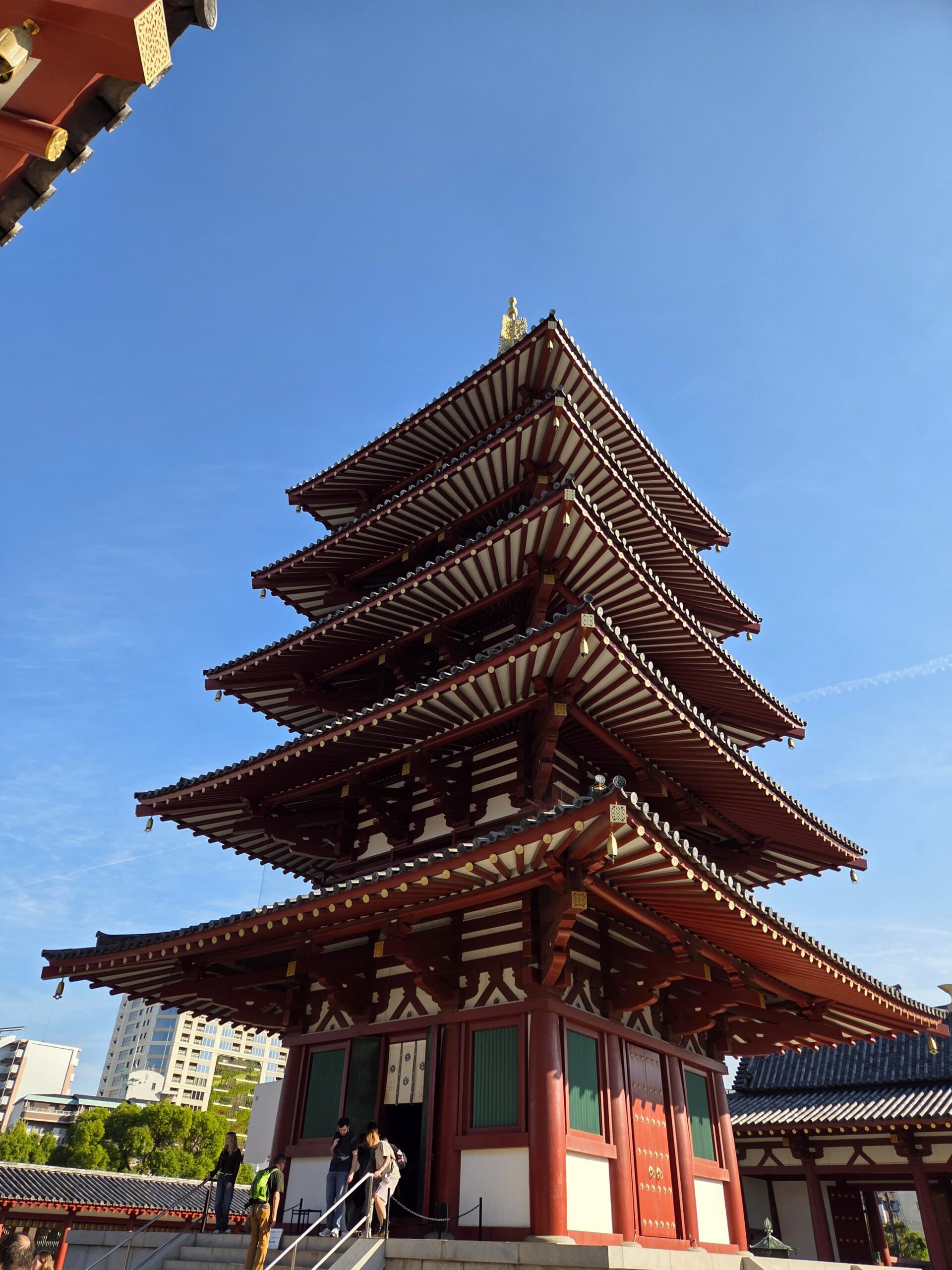 Then after walking all the way to the end of the shopping street, I took a train to visit Shitennoji Temple. Now that’s a huge temple complex, with several interesting buildings to view, like the main hall, pagoda, and even the museum. It was impressive that things could be preserved this well even after thousands of years.