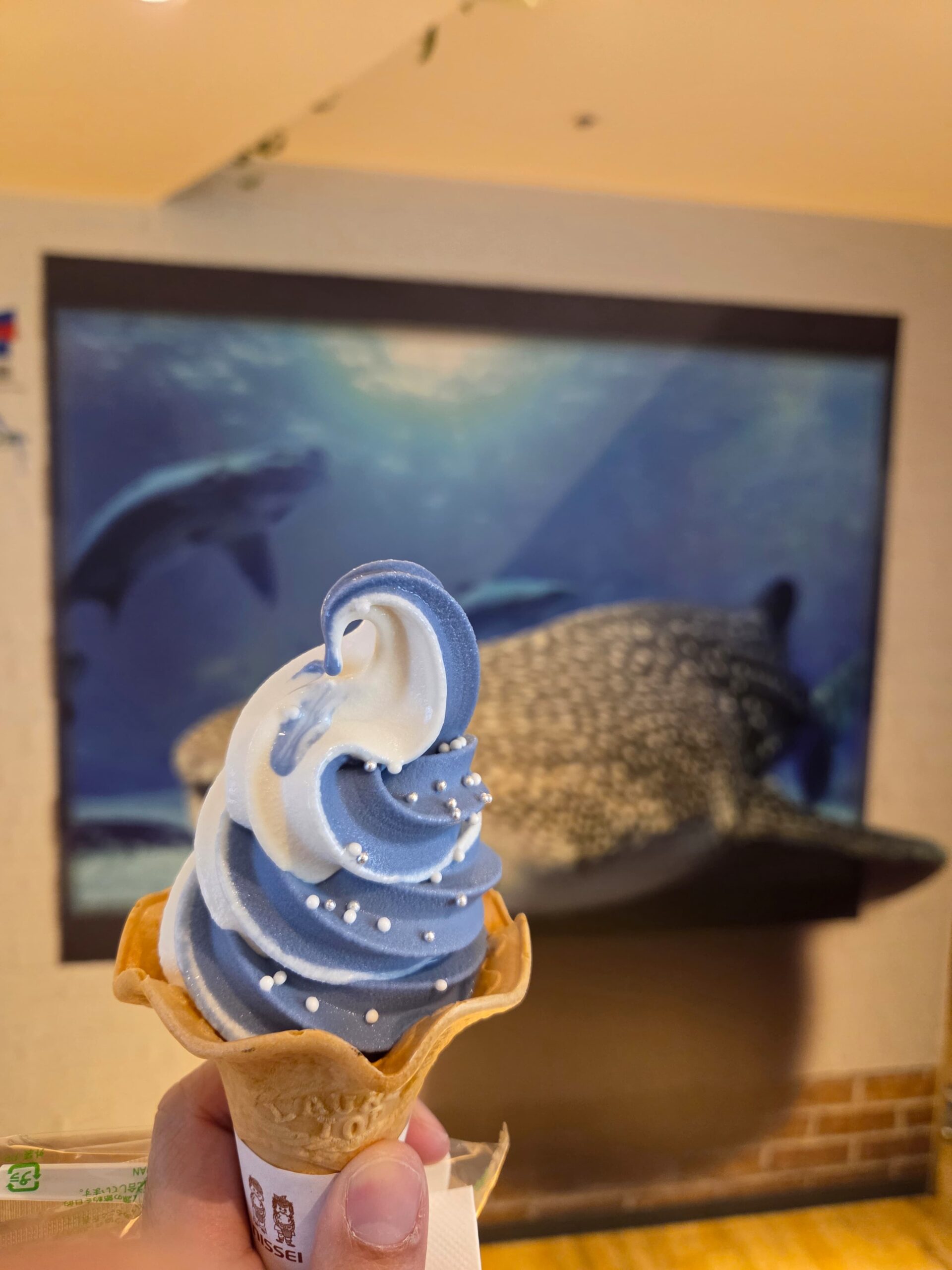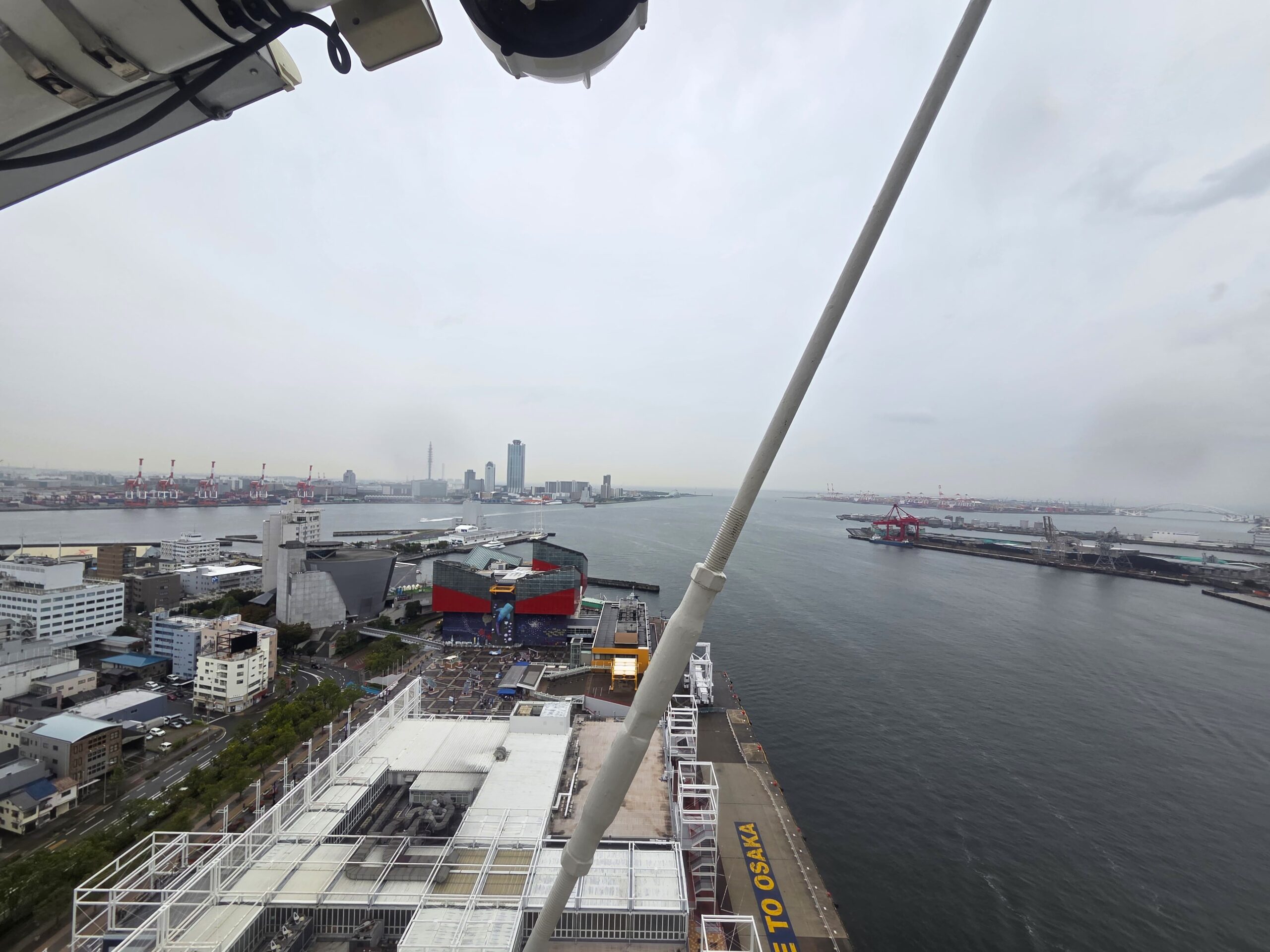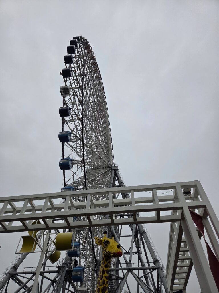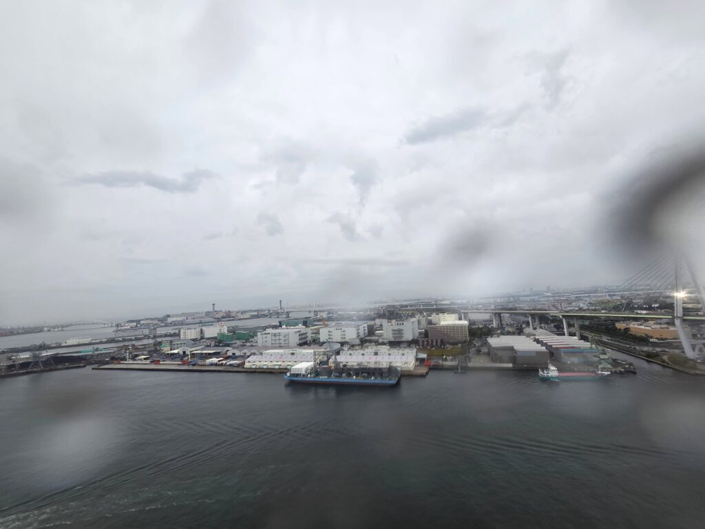 The next day was mostly rainy. I went to the Osaka Aquarium area. The day before I checked its website to check for ticket purchase information and thought that I didn’t need to reserve a timing, but when I arrived at its opening time at 10 am, apparently the queue had formed and they only sold tickets starting for 12 pm. Ugh, I should’ve reserved the day before. I think I got used to the slower pace of rural Japan, where tickets usually are only sold at gates and there’s no need to reserve a time slot. I guess the next best thing to do is to do the next best thing: reserve the ticket for 12 pm, and then find other things to do. There’s a big ferris wheel at the Tempozan Market area, so I rode it.