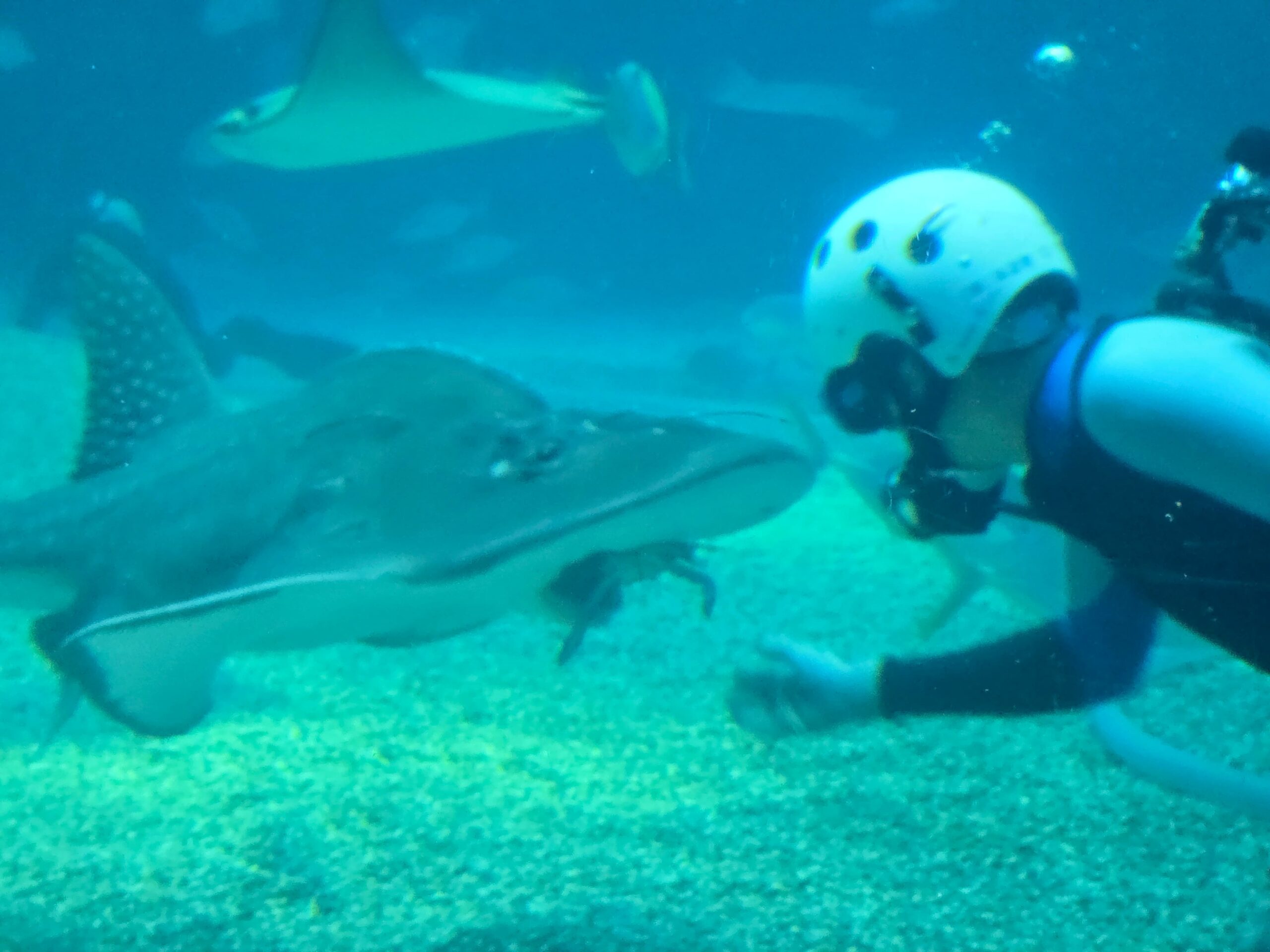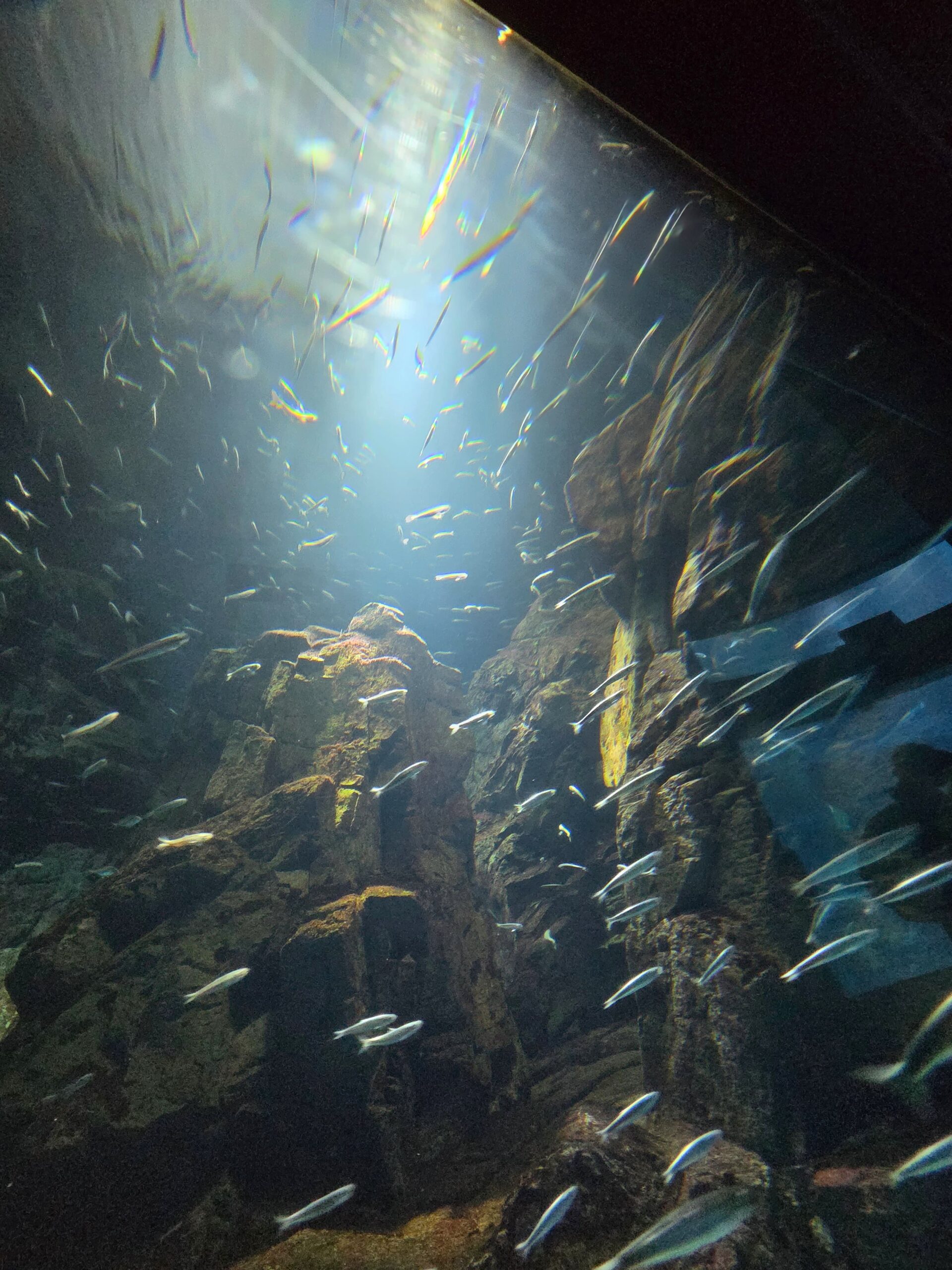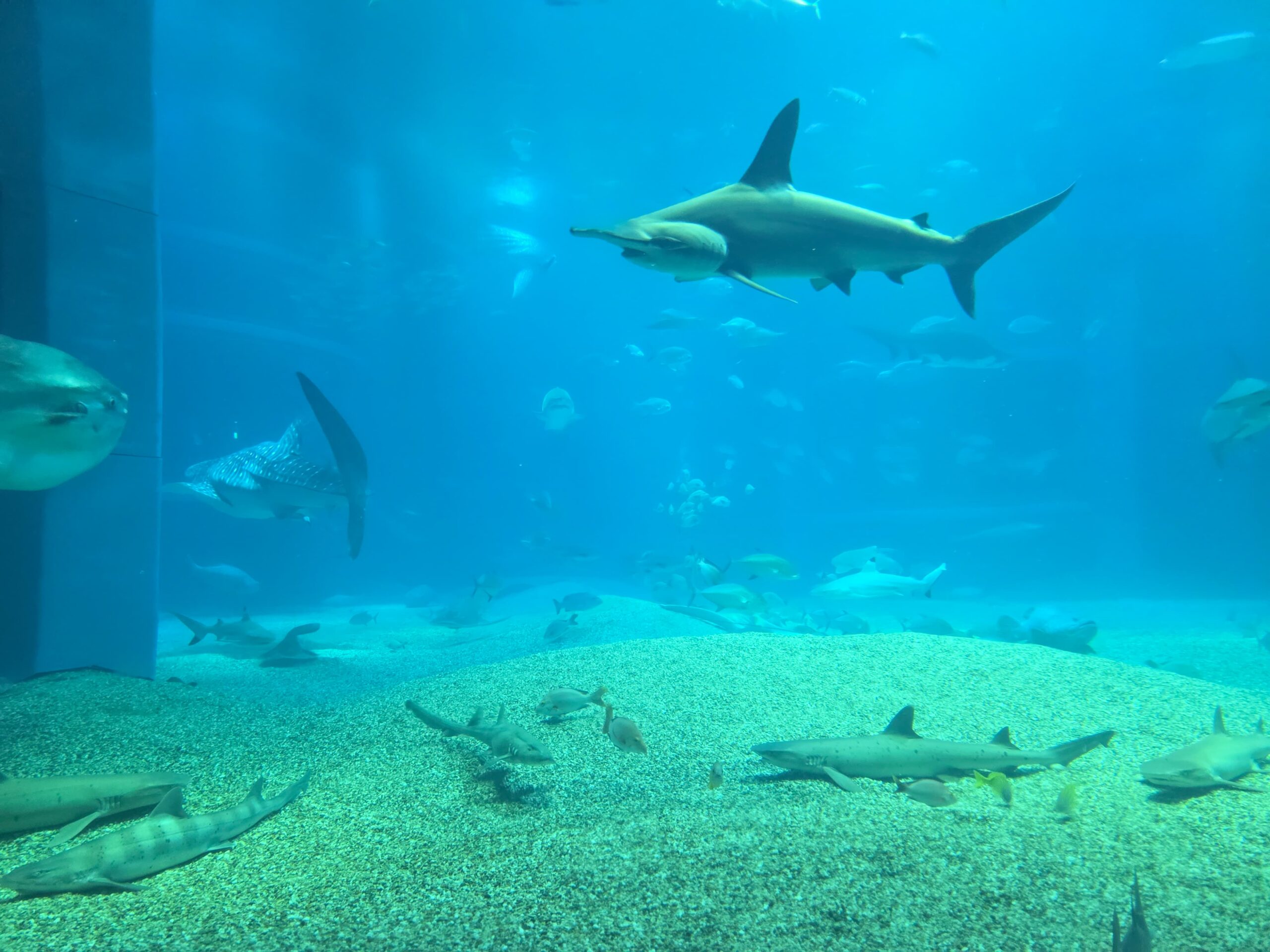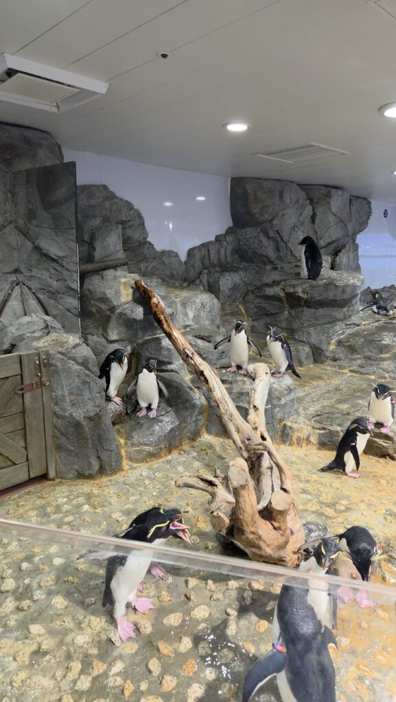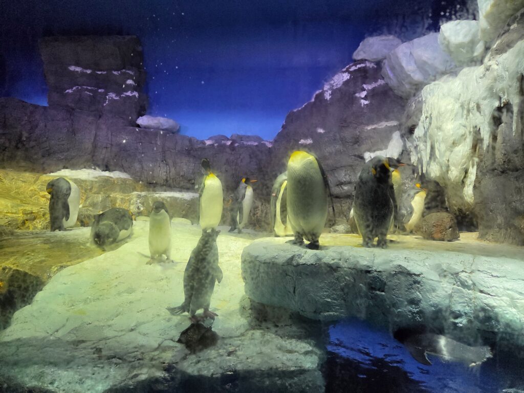 After that, I finally entered the Osaka Aquarium. I think the route plan was really good. The building was quite tall for an aquarium and after the entrance, we went to the top level, and then the route slowly circled to the ground level. We’re introduced to different themes of oceans and as we went downwards, also introduced to creatures that live deeper and deeper in the ocean. Even for a weekday, the aquarium was really crowded. Waves after waves of young kids under school trip came and went. I think the centerpiece “Pacific Ocean” was amazing, showing a vast area of different species that lived under that ocean with many of them intermingling together, especially with the big whale sharks, which are used as their mascots. Besides that, it’s also my first time encountering closely a very open enclosure of Gentoo penguins and they were really loud when they squeaked.