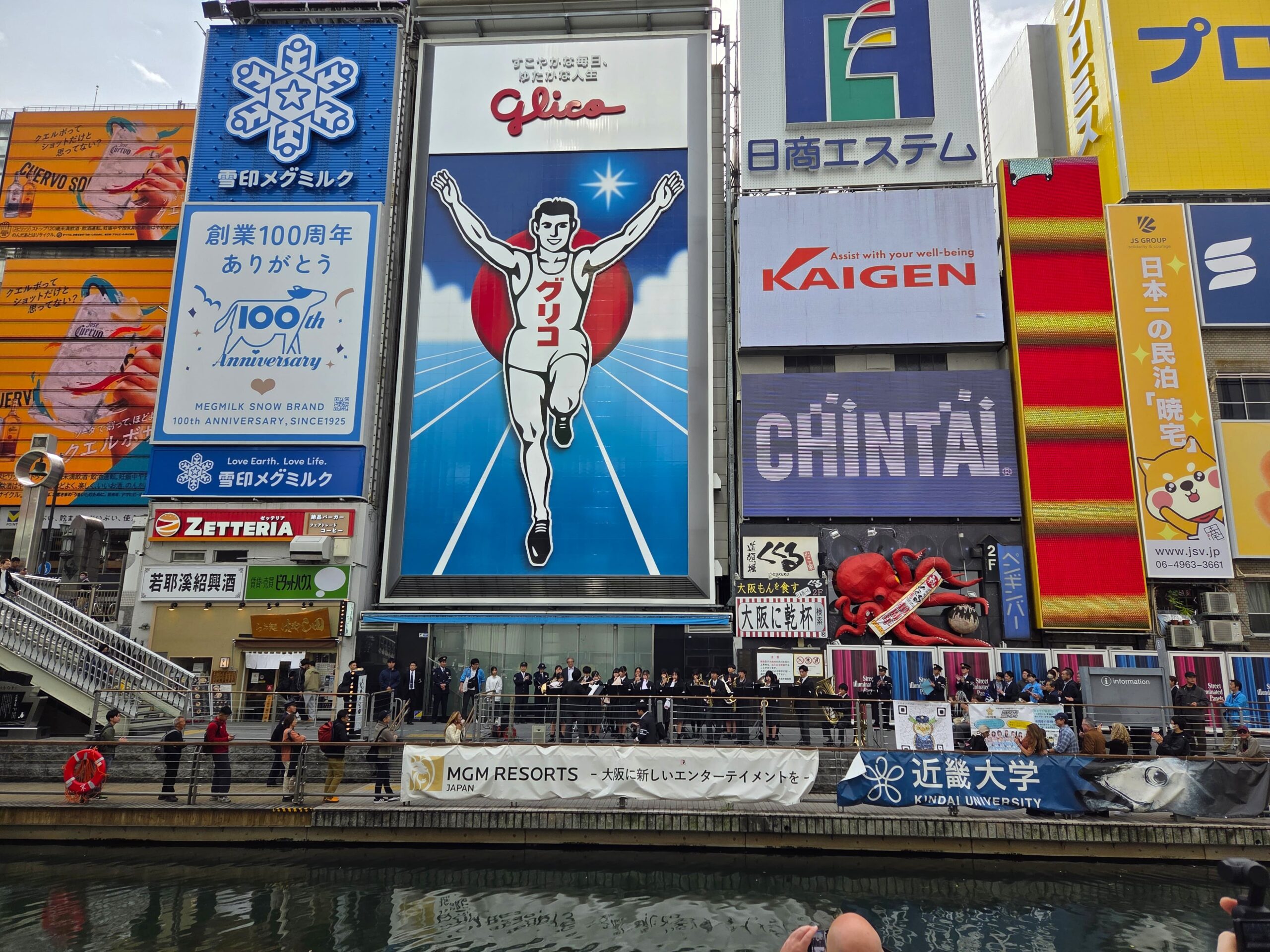 At the Glico sign area, I saw a school band was starting to perform, but I had to quickly leave since I was meeting Leo nearby.
